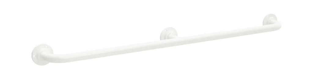 Sateen Polish Three Flange Grab Rail can be manufactured with a ribbed grip for extra stability and confidence. Please add an 'R' to the end of the product code.